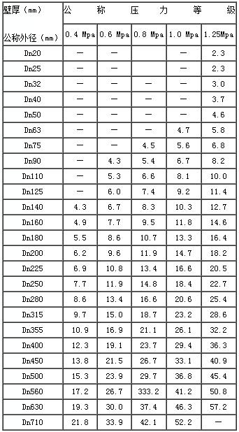 HDPE1000級(jí)供水管材規(guī)格表(執(zhí)行標(biāo)準(zhǔn)GB/T13663-2000)